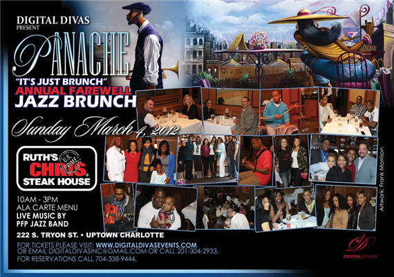 • Digital Divas Presents Panache — Annual Farewell Jazz Brunch @ Ruth’s Chris. Featuring an ala carte menu and live music by the PFP Jazz Band. Time: 10am – 3pm. digitaldivasinc@gmail.com