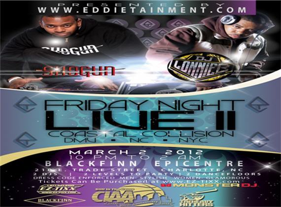 IGNITION: LET THE WEEKEND BEGIN. We all know that people from all over the region will have already converged on the city by Thursday March 1, 2012 so Eddietainment decided to add another attraction for people to enjoy. We have DJ Frosty of 100.1 The Beat in Columbia, SC and DJ Lonnie B of 92.1 in Richmond, VA. They will come together at one of Charlotte’s premier venues Blackfinn at Epicentre. There will be a very limited amount of $10 tickets on sale initially so please take advantage of this great offer. Doors open at 9pm and we will be partying hard until 2am.