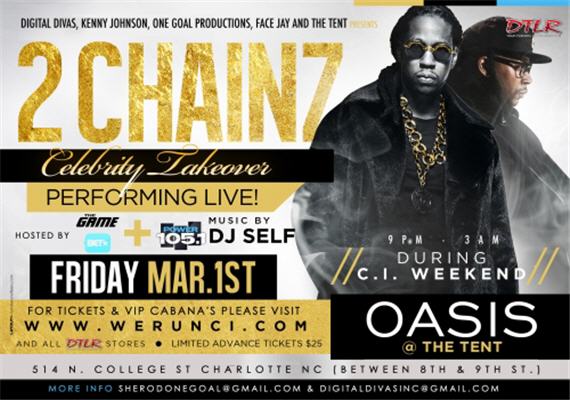 Digital Divas has hosted this day party each year since the CIAA Tournament came to Charlotte. Music by DJ Daddy D. 1-7 p.m. $15 and up.