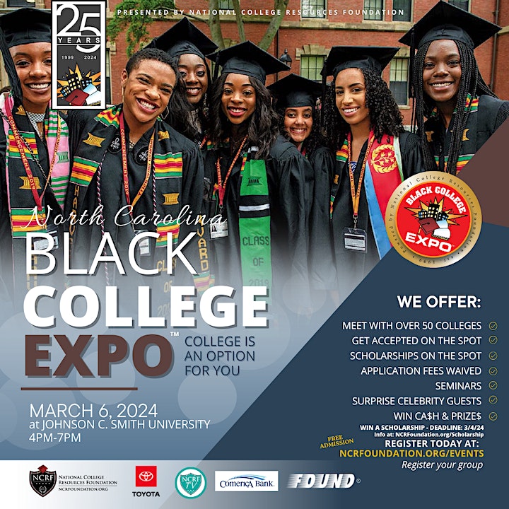 Join us for the 2nd Annual North Carolina Black College Expo at Johnson C. Smith University in Charlotte, NC! This in-person event is a fantastic opportunity for students and families to explore a wide range of colleges, trade, private, public and historically black colleges and universities (HBCUs).