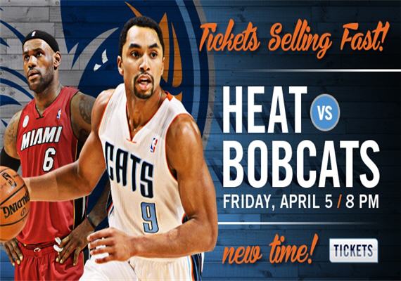 Your NBA Charlotte Bobcats host the defending World Champion Miami Heat on Friday, April 5, 2013 @ Time Warner Cable Arena.