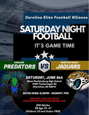 Since there is no football on TV, why not come out and watch great football with Charlotte’s new Adult Minor League Football Team, Carolina Predators.