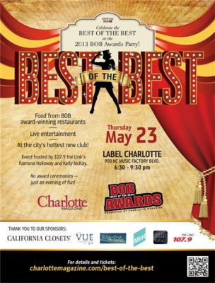 Charlotte Magazine’s 2013 BOB Awards May 23rd