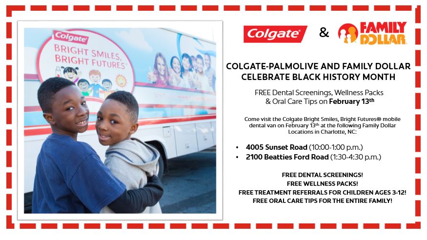 CHARLOTTE, NC – For the fourth straight year, Colgate-Palmolive and Family Dollar have partnered in honor of Black History Month to empower African-American families across the Charlotte area to honor their past with healthy, proud smiles.