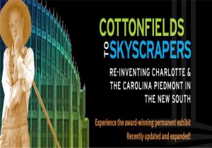 The centerpiece of the Museum is the award-winning exhibition, Cotton Fields to Skyscrapers: Charlotte and the Carolina Piedmont in the New South. Covering 8,000 square feet, the exhibit features Charlotte and its 13 surrounding counties as a case study to illustrate the profound changes in the South since the Civil War.