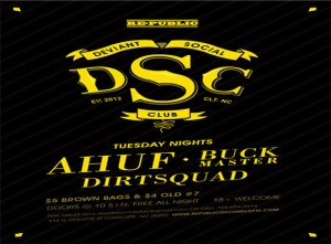 Deviant Social Club every Tuesday Night at RePublic. Resident DJs Ahuf and Rob Banks! $5 Brown Bags and $4 Old #7.