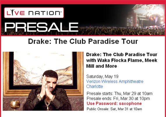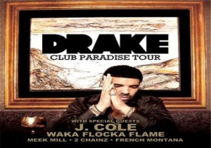 Drake brings his Club Paradise Tour to Charlotte’s Verizon Wireless Amphitheatre on Saturday, May 19, 2012. Featuring J. Cole, Waka Flocka Flame, Meek Mill, and More.