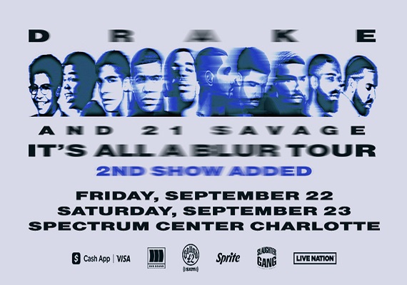 Drake’s It’s All A Blur Tour With 21 Savage. Spectrum Center. Friday September 22 & 23.