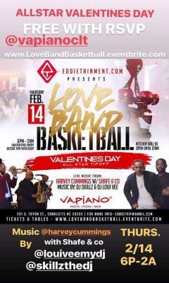 Eddietainment.Com Presents Love Band Basketball Valentine’s Day All Star Tip Off! Thursday, Feb 14, 2019 @ Vapiano.