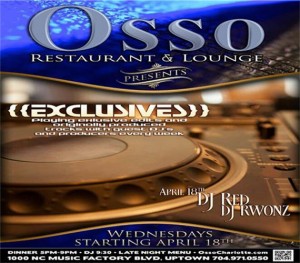 Location: Osso Restaurant & Lounge: 1000 NC Music Factory Blvd, Charlotte, NC