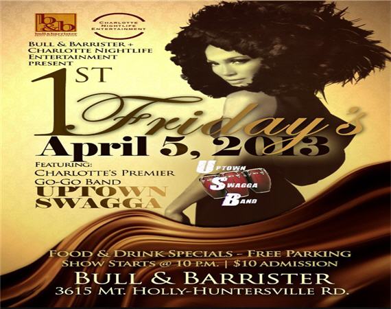 Friday, April 5th at Bull & Barrister… Featuring Charlotte’s Premier Go-Go Band…”Uptown Swagga”.