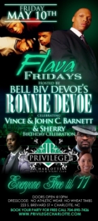 FLAVA FRIDAYS HOSTED BY BEL BIV DEVOE’S RONNIE DEVOE! CELEBRATING VINCE & JOHN C. BARNETT AND SHERRY’S BIRTHDAYS!|EVERYONE FREE TIL 11|DOORS OPEN @ 10|DRESSCODE: NO ATHLETIC WEAR OR WHEAT TIMBS|223 S. BREVARD ST