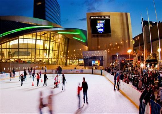 Holiday On Ice is presented by Cool Renewal Spa and is located on the plaza at the NASCAR Hall of Fame from November 20th, 2015 to January 10th, 2016.
