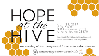 Popular area business Ella B. Candles is partnering up with unique nonprofit organization, HOPE International for an incredible night empowering women entrepreneurs. The event is taking place next Tuesday at Ella B. Candles home base, lovingly nicknamed The Hive. Hosted by owner Julie Tassy, HOPE at the Hive will explore seeking a deeper purpose, true success and a healthy work-life balance for seasoned business owners and newcomers alike. The event is free, and all RSVPs will receive a special gift. Hint, its a candle!