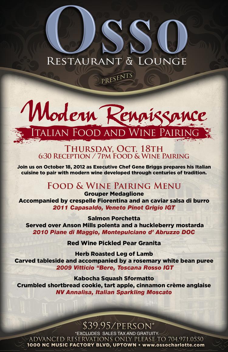 Executive Chef Gene Briggs is preparing his Italian Cuisine which will be paired with selected wines.