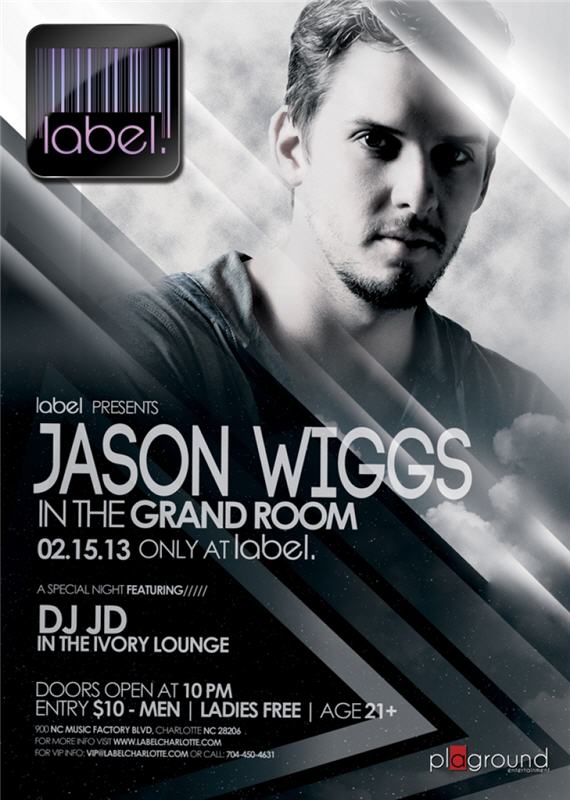 Label Presents renowned DJ Jason Wiggs LIVE Friday, February 15, 2013 In The Grand Room. With DJ JD In The Ivory Lounge.