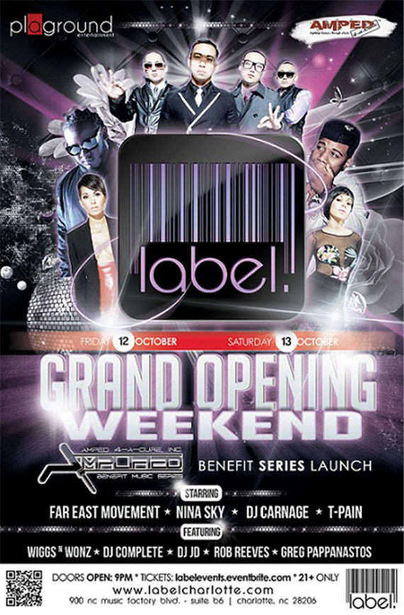 Charlotte’s most anticipated venue is opening with a GRAND OPENING WEEKEND October 12th & 13th! LABEL is offering a special LIMITED TIME special price ticket for this epic event for a few days only. This weekend event is in support of LABEL’s official charity partner, Amped 4-A-Cure, Inc. with all of Saturday’s door proceeds going to support cancer research, early detection and prevention!