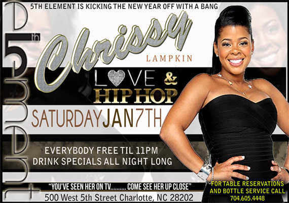 5th Element Nightclub Presents Love & Hip-Hop’s First Lady Chrissy Lampkin Live! Saturday, January 7, 2012. You’ve seen her on TV, now come see her up close!
