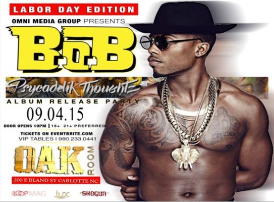 Omni Media Group and Oak Room Charlotte present the B.O.B. Album Release Party – Friday, September 4, 2015.