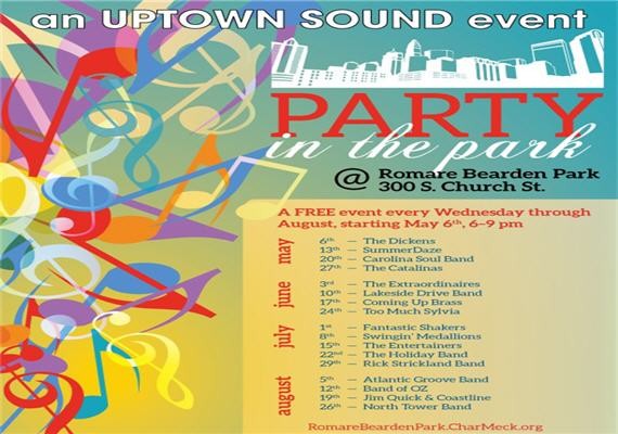 Party in the Park, free weekly music concerts that make Romare Bearden Park the place to be on Wednesday evenings from 6 to 9pm.