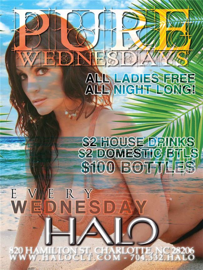 Pure Wednesday every Wednesday night at HALO. All Ladies in free all night. 18+ for Everyone. $2 House drinks. $2 domestic bottles.