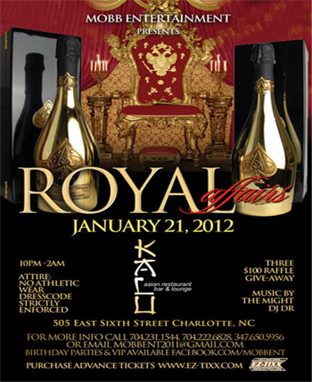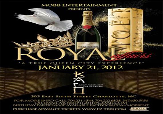 Mobb Ent presents a Royal Affair, a social gathering of folks who want to mingle and party. For more information, call 704-231-1544.