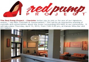 The Red Pump Project – Charlotte invites you to join us for one of our signature events, ” Say RED: Cocktails & Conversations.” This will be an interactive evening of cocktails and conversations about the issues surrounding HIV/AIDS in our community. It will take place Thursday, April 19, 2012, from 7:00-9:30 pm, at Kanvas Wine Bar and Art Gallery.