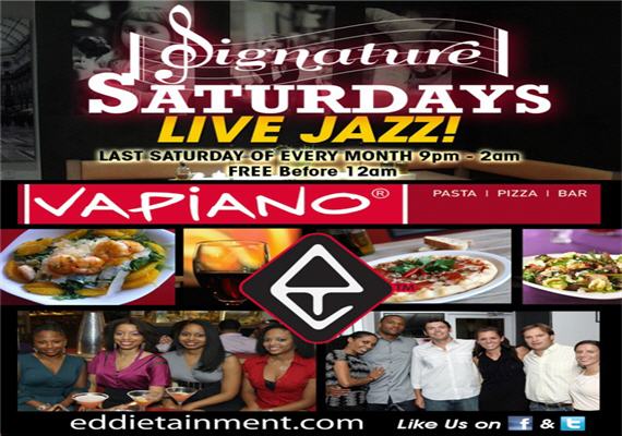 EDDIETAINMENT presents Signature Saturdays at Charlotte’s premiere Luxury “Hot Spot” Vapiano 201 South Tryon St. (near corner of 4th St. uptown/downtown) 9pm – 2am. Arrive early to enjoy the sensational sounds of many of your favorite area jazz bands while relaxing and feasting on delectable food and great drinks.