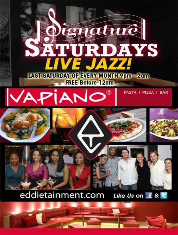 Eddietainment presents Signature Saturdays at Charlotte’s premiere Luxury “Hot Spot” Vapiano 201 South Tryon St. (near corner of 4th St. downtown) 9pm – 2am. Arrive early to enjoy the sensational sounds of many of your favorite area jazz bands while relaxing and feasting on delectable food and great drinks.