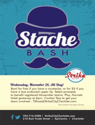 If you want to cash in on your stache, have your muzzy send Tess a message at tshoe@strikecitycharlotte.com to get involved.