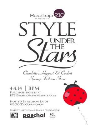 Rooftop 210 at Epicentre presents Style Under the Stars. Friday, April 4, 2014. Charlotte’s Hippest and Coolest Spring Fashion Show produced by Effie Loukas. From corals and prints to white and bohemian influences come celebrate spring with us as we feature some of Charlotte’s premiere boutiques.