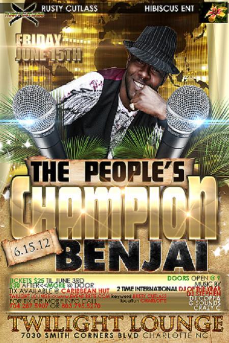 Friday, June 15th Soca artist Benjai out of Trinidad and Tobago will be preforming Live at Twilight! With hits like The People’s Champion, Wine to the side, Kinky wine and Over and Over.  Early joggling by 2 Times International DJ of the Year DJ Stephen, DJ Coppa, G Sounds and Crazy C…