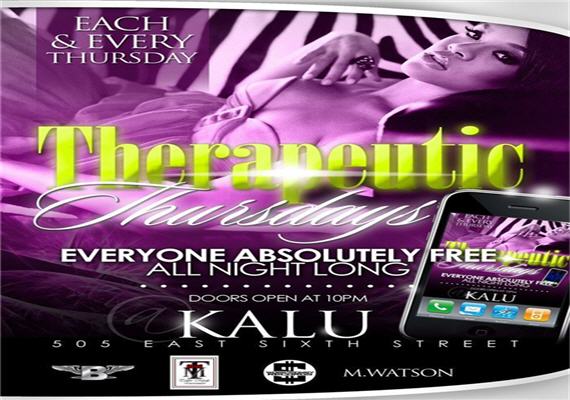COME AND JOIN US AFTER WORK FOR THERAPEUTIC THURSDAYS AT KALU 505 EAST 6TH ST. CHARLOTTE NC.