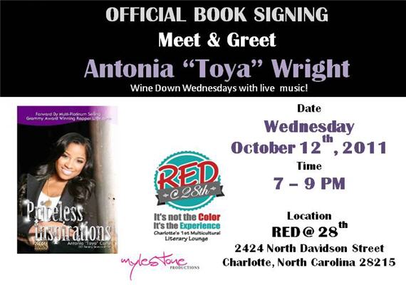 BET Reality Series star Antonia “Toya” Wright hosts a Charlotte meet & greet and signing for her book ‘Priceless Inspirations’ on Wednesday, October 12, 2011 at RED @ 28th – Multicultural Literary Lounge.