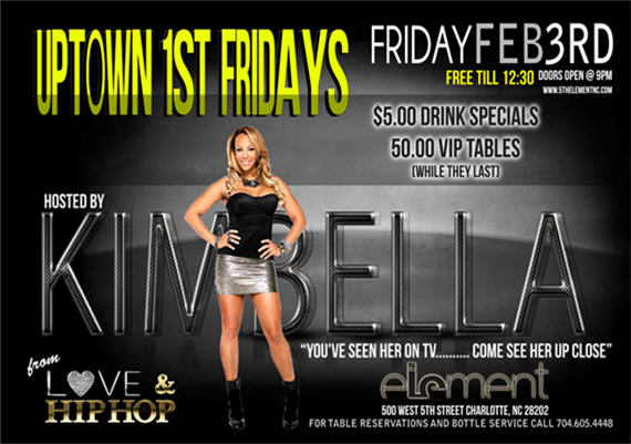 Uptown First Fridays at 5th Element Presents Love & Hip-Hop’s Kimbella Friday, February 3, 2012.