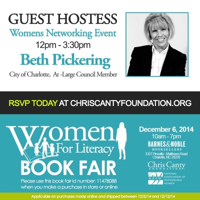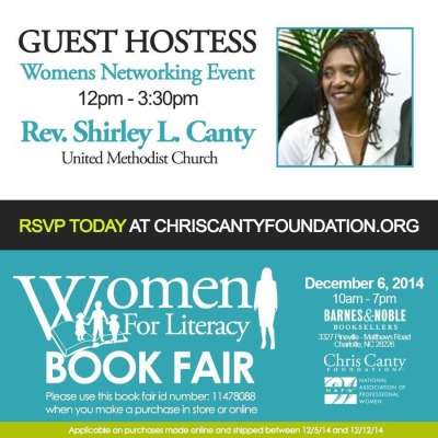 The Chris Canty Foundation is excited to host the Women For Literacy Book Fair at Barnes & Noble Book Store located at 3327 Pineville-Matthews Road, Charlotte NC, 28226. This event will serve a duel purpose as we are inviting all professional women to come out and network while supporting the Chris Canty Foundation Reading Buddies literacy Initiative. We will have several professional women and authors on site during this event to talk about the importance of literacy education, living healthy, and giving back to the community.