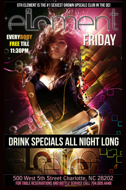 Seduction Fridays @ 5th Element Everyone free before 11:30pm.